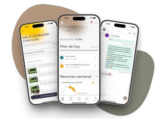 Todo el programa se realiza a través de mi app. Las revisiones se realizan cada 2 semanas y las podremos hacer juntas a través de un formulario de control, fotos, medidas, sensaciones que vives... Con esta información iremos ajustando los planes para asegurarnos de que estás consiguiendo el mayor progreso.